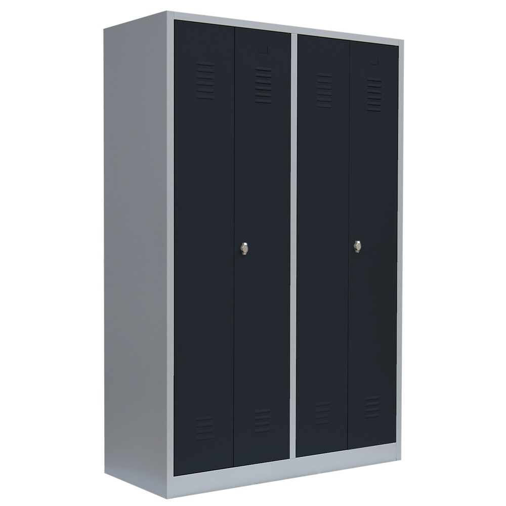 Lüllmann® Garderobenschrank, 4 Abteile, je 2 mittig schließend, 1800 x 1170 x 500 mm, lichtgrau/anthrazit