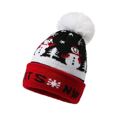 berretto natalizio da donna in maglia – rosso con motivo a renne e pompon, materiale in poliestere, perfetto per le festività natalizie e per l'abbigliamento invernale