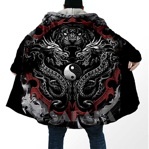 Per uomo Con Motivo Animale Cappotto Invernale Giacca in Pile Cappotto Calore Termico Confortevole Casual Abbigliamento quotidiano Cerniera Tasca Stampa 3D Autunno Inverno Con Cappuccio Manica Lunga