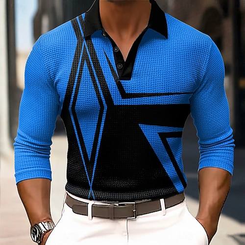 Per uomo Astratto Geometrico Magliette Polo a Nido d'Ape Manica Lunga Magliette polo Camicie con Colletto Casual Affari Abbigliamento da lavoro Abbigliamento quotidiano Bottoni Primavera Autunno