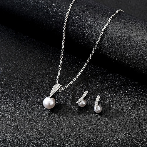 elegante set di gioielli di perle – collana e orecchini placcati in oro rosa con dettagli in cristallo per donna