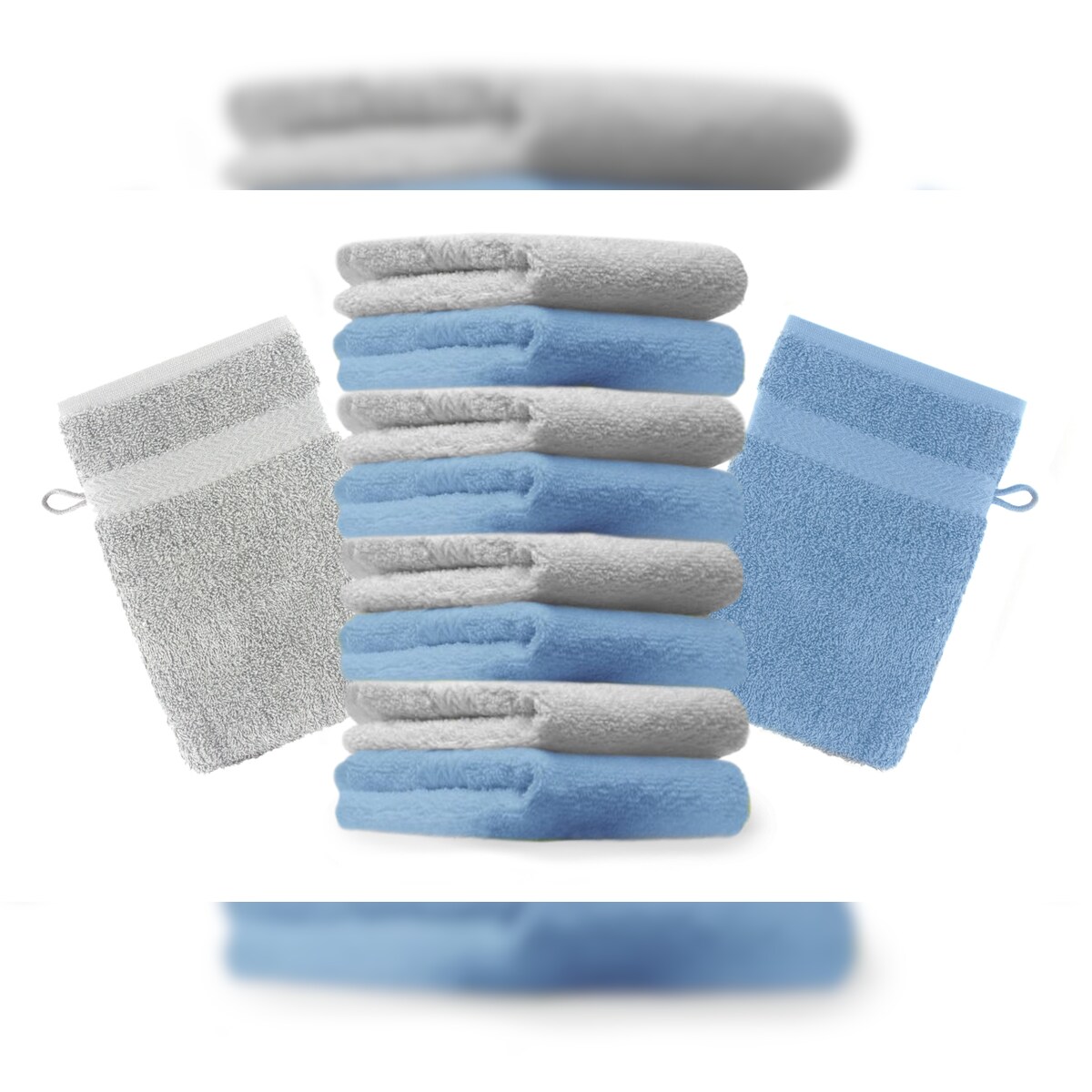 Betz 10 Stück Waschhandschuhe PREMIUM 100% Baumwolle Waschlappen Set 16x21 cm Farbe hellblau und silbergrau
