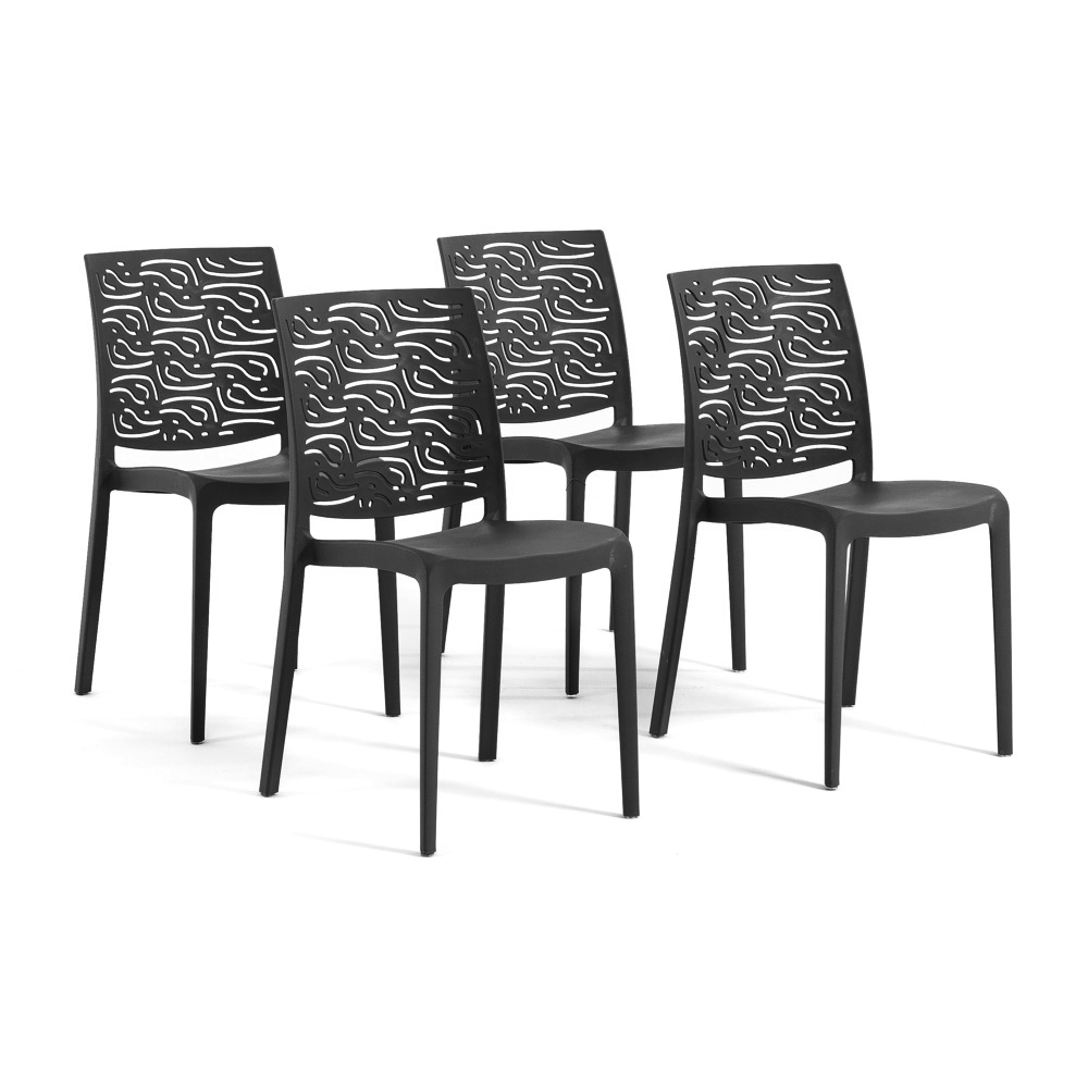 RATTATAN 4er-Set stapelbare Stühle aus Polypropylen mit Glasfasern für Außenbereich und Garten, Bar und Restaurant, Küche modernes Design - MALIKA - Schwarz