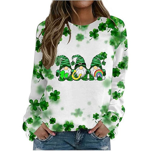 T-shirt da donna per il giorno di San Patrizio cuore shamrock moda maniche lunghe scollo tondo top regolare casual stampa verde erba nero bianco verde chiaro verde scuro primavera e autunno