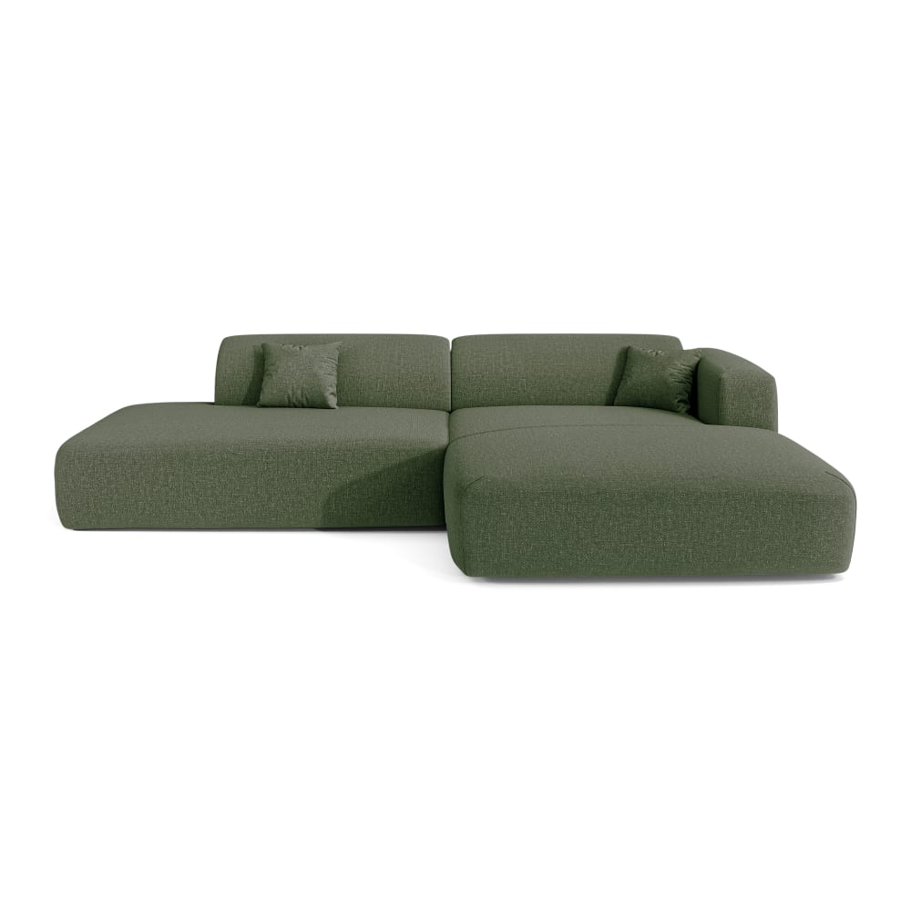 Divano angolare destro in tessuto tramato verde oliva 5 posti