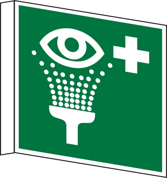 Rettungszeichen, Fahnen-/Nasenschild Augenspüleinrichtung E011 - ASR A1.3 (DIN EN ISO 7010) - 150x150x1 mm Kunststoff nachleuchtend