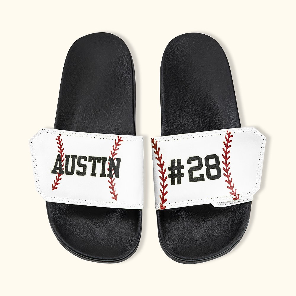 Sandales à Motif Ballon de Sport Personnalisées avec Nom et Numéro Pantoufles de Vacances Cadeau Anniversaire pour Famille Ami