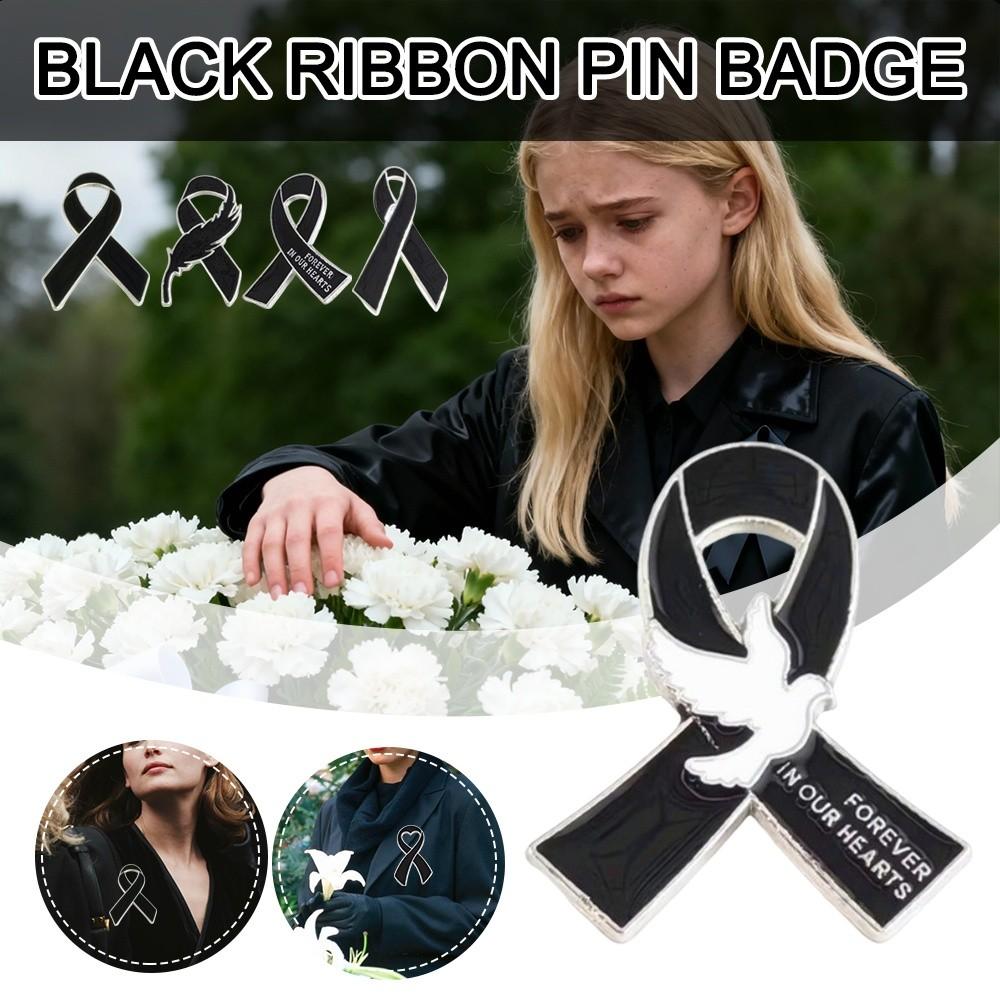 Kreativität Schwarz Gedenken Schwarzes Band Anstecknadel Souvenir Königin Band Schleife Anstecknadel Legierung Abzeichen Anstecknadel Für Beerdigungen