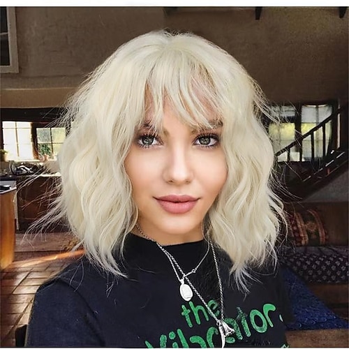 parrucca bob con frangia parrucca corta e dritta per donne parrucca sintetica resistente al calore dall'aspetto naturale per ragazze uso quotidiano per feste di Halloween e cosplay