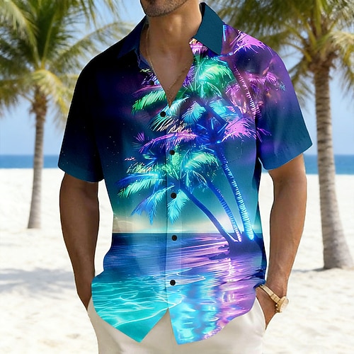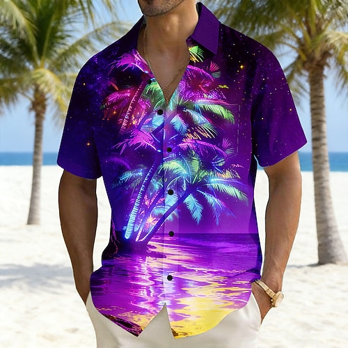 Per uomo Albero di Cocco Paesaggio Bagliore al neon Camicia Camicie hawaiane Camicia Aloha Manica Corta Hawaiano Vacanza Ferie Estate Collo ripiegato Stampa 3D Una tasca anteriore Camicia tipo lino