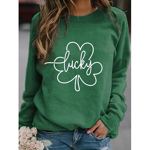 Felpe da donna per il Giorno di San Patrizio con grafica trifoglio casual a maniche lunghe colletto rotondo tops regolari casual stampa vacanza verde erba bianco verde primavera inverno