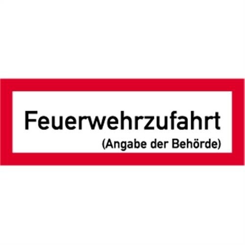Schild Feuerwehrzufahrt mit Angabe der Behörde, Alu, 594x210 mm