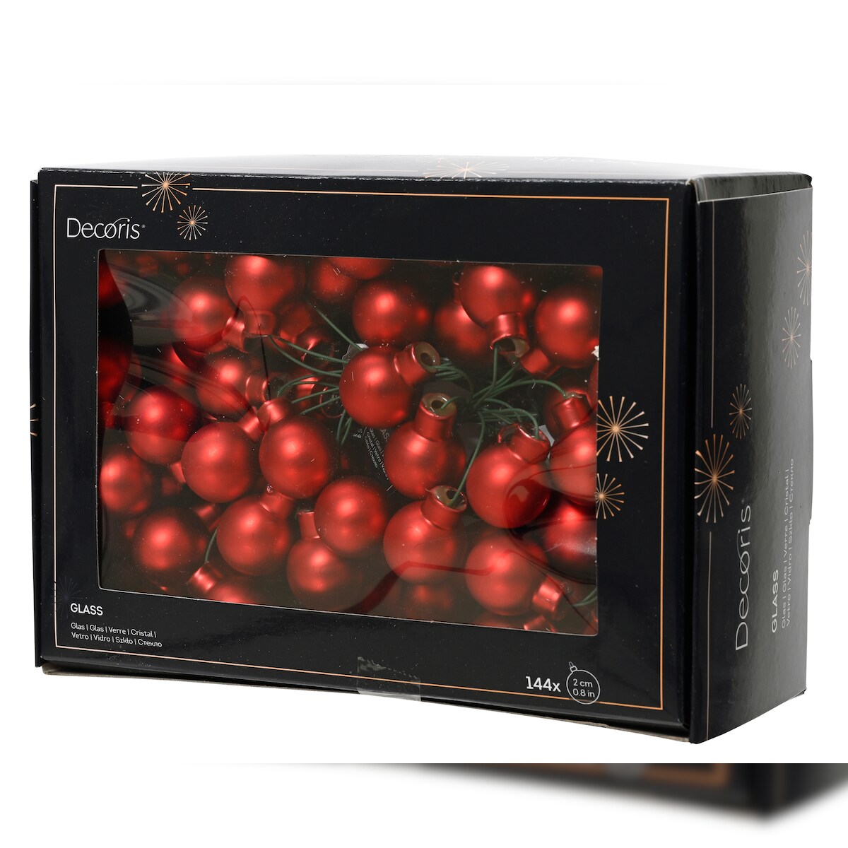 144 Glaskugeln am Draht 2cm Weihnachtskugeln Spiegelbeeren zum Basteln rot