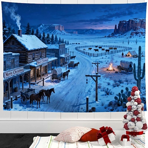 arazzo natalizio – arazzo da parete festivo, arazzo decorativo con Babbo Natale, fiocco di neve, albero di Natale, paese delle meraviglie invernale, per la decorazione della casa, della camera da