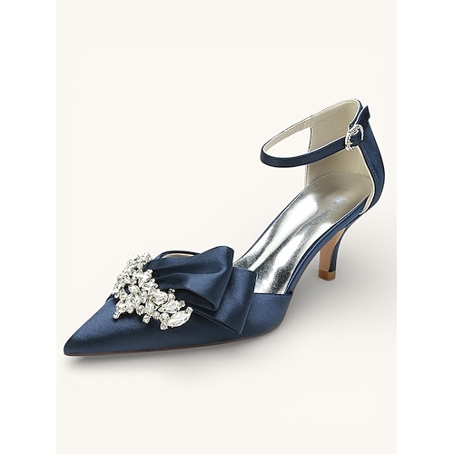 Eleganti décolleté da sposa in raso con dettagli in strass, da donna, con punta affilata, tacco basso e cinturino alla caviglia, disponibili in vari colori