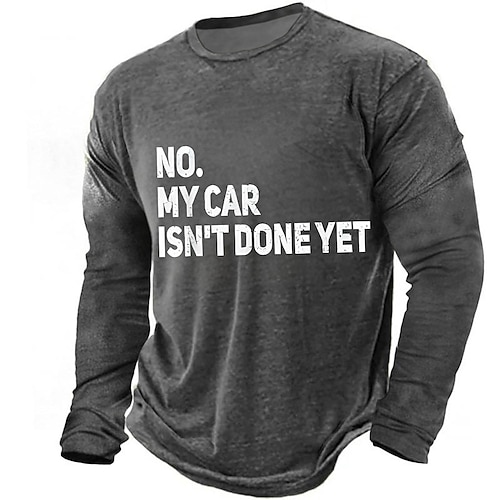 No, la mia macchina non è ancora pronta, citazione divertente sulle auto, maglietta a maniche lunghe da uomo, maglietta grafica vintage da meccanico, verde oliva, girocollo, top casual, abbigliamento,