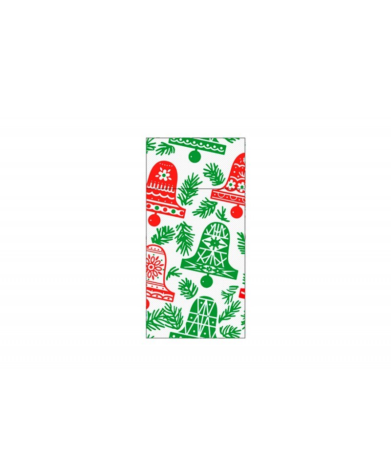 Schachtel mit 480 Känguru-Servietten 40 x 40, weiß, dekoriert mit Weihnachtsglocken (rote und grüne Tinte)