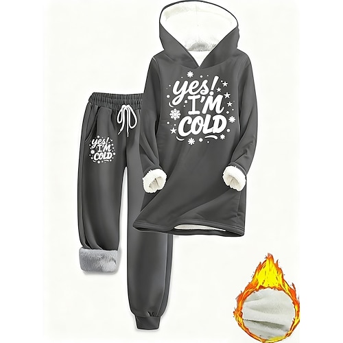 Per donna Caldo Sportivo Felpa con cappuccio Tuta da ginnastica Completi di pantaloni Jogging Pantaloni Manica lunga Con cappuccio Alfabetico A cordoncino Stampa Esterno Informale Nero Rosa Vino