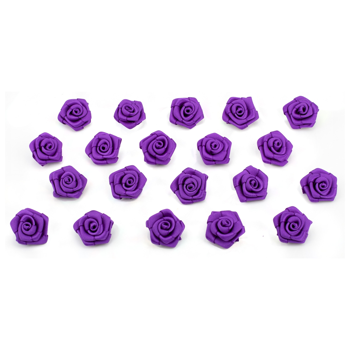 Creativery Satinrosen 2cm 20 Stück Stoffblumen zum Basteln Dekorieren Hochzeit Geschenkverpackung Blütendeko Tischdeko Handarbeit Stoffrosen Deko Lila