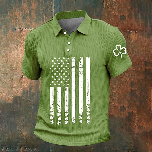 San Patrizio Per uomo Trifoglio Bandiera Americana Magliette Polo a Nido d'Ape Manica Corta Magliette polo Camicie con Colletto Casual All'aperto Abbigliamento Quotidiano Abito da festa Stampa 3D
