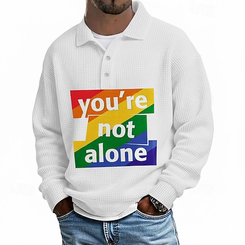 Non sei solo, polo da uomo con stampa waffle, polo a maniche lunghe, con risvolto, casual, per attività all'aperto, abbigliamento quotidiano, stampa 3D, primavera, autunno, inverno, blu, bianco e