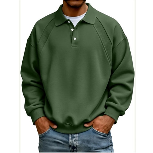 Per uomo Magliette Polo a Nido d'Ape Polo Abbigliamento quotidiano Data Zip a un quarto Manica Lunga Moda Essenziale Semplice Cerniera Primavera Autunno Vestibilità regolare Nero Bianco Vino Cachi