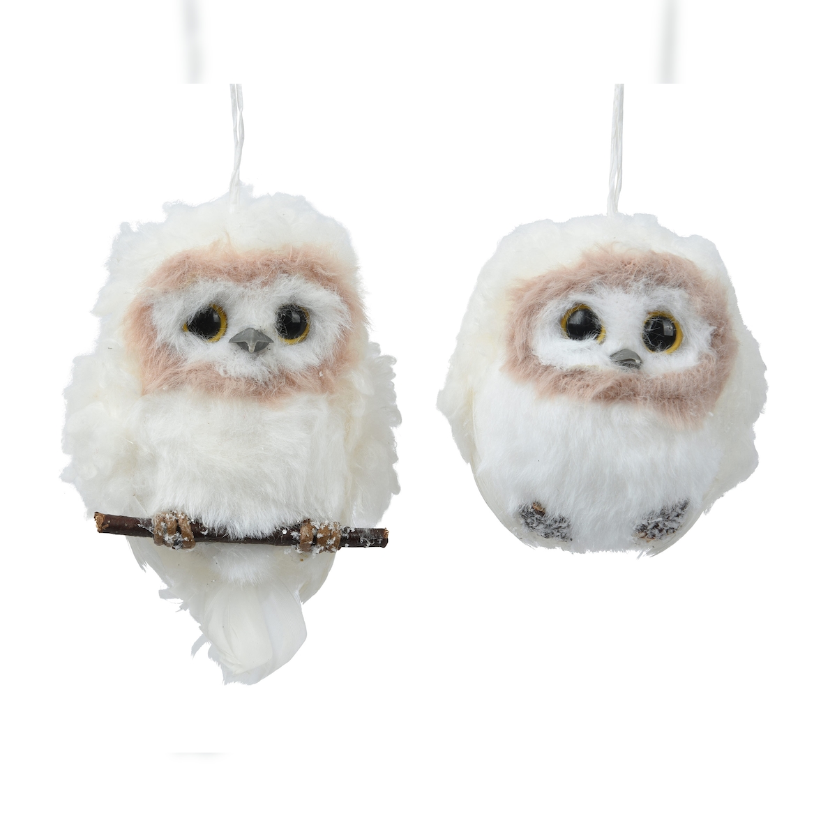 1x Christbaumschmuck Eule Kunstfell 8cm Figur - Handgefertigt Bruchfest Weihnachtsbaum Anhänger Weihnachten Weihnachtsbaumschmuck Vogel Uhu Kauz Creme