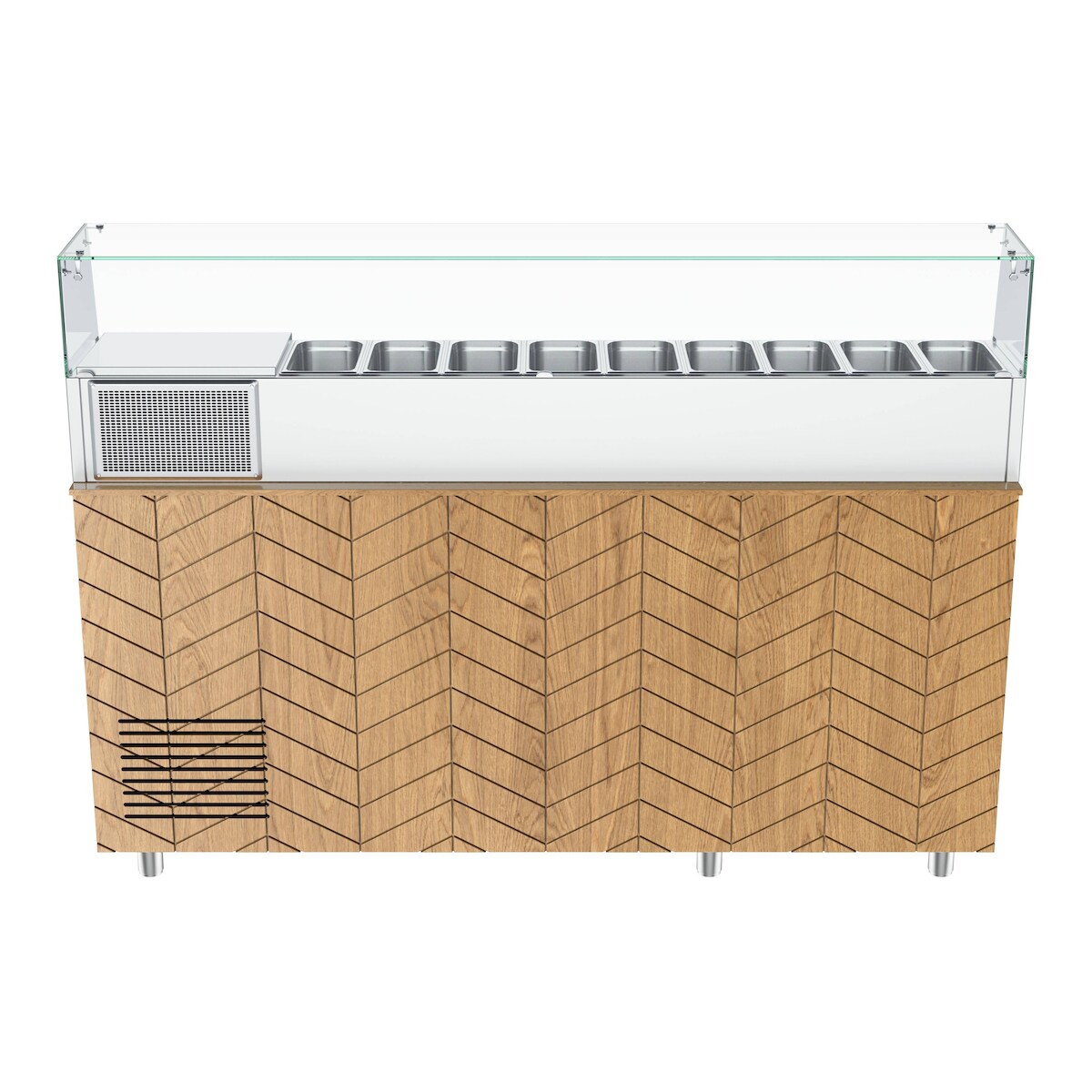 Gastronics Pizzakühltisch Premium – Kühltheke mit schwarzem Compact im Marmor-Design LED mit 207 x 80 x 145 cm 3 Türig