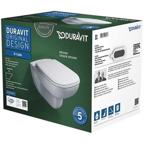 Wand-Tiefspül-WC Set D-Code 540 x 355 mm Rimless mit WC-Sitz soft-close weiß