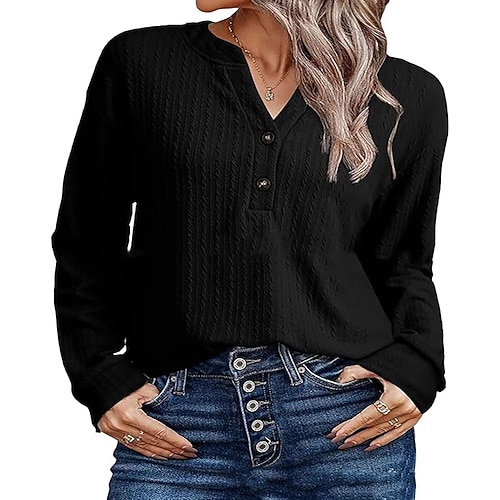 Per donna Blusa Tinta unica Quotidiano Elegante Casual Manica Lunga Girocollo Top Regolari Quotidiano Bottoni Blu Rosa Albicocca Primavera Autunno Inverno