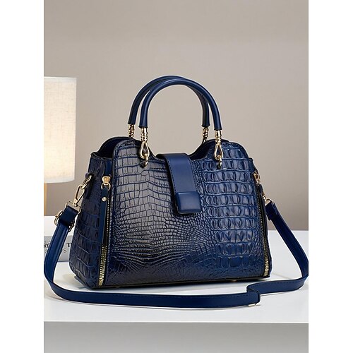 borsa a mano con manico superiore in coccodrillo goffrato da donna – borsa tote media strutturata con tracolla staccabile, dettagli con cerniera e finiture dorate per lavoro, ufficio, viaggi e tutti i giorni