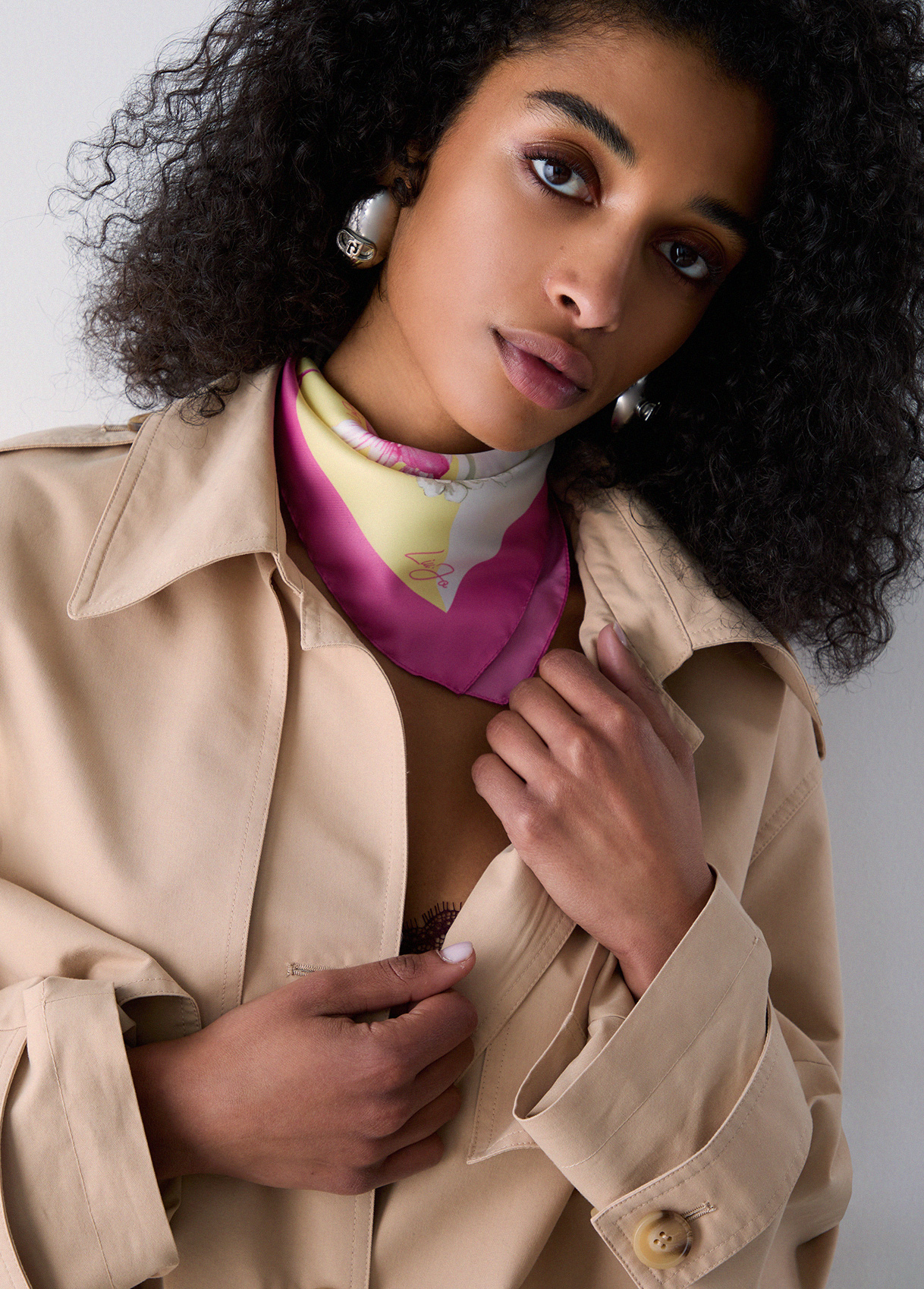 Liu Jo Petit Foulard À Fleurs, Rose, Taille Unique