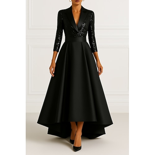 Per donna Da donna Abito da smoking Abito alto-basso Matrimonio Formale Ospite di nozze Strass Elegante Manica 3/4 plissettata Lunghezza al pavimento Revers dentellati