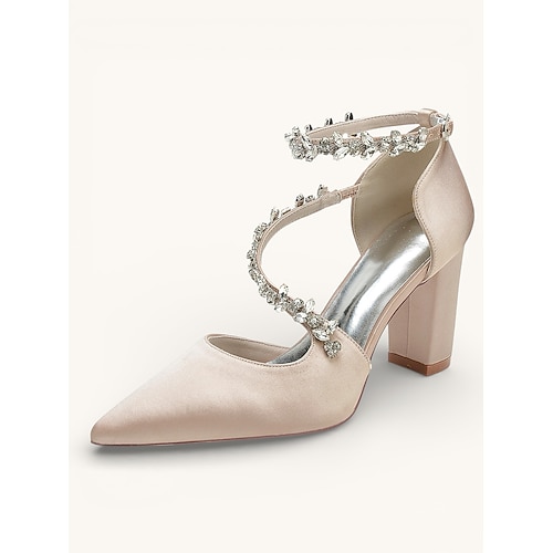 décolleté da sposa in raso da donna con cinturino alla caviglia in strass – scarpe da sposa e da damigella con punta a punta e tacco basso in vari colori