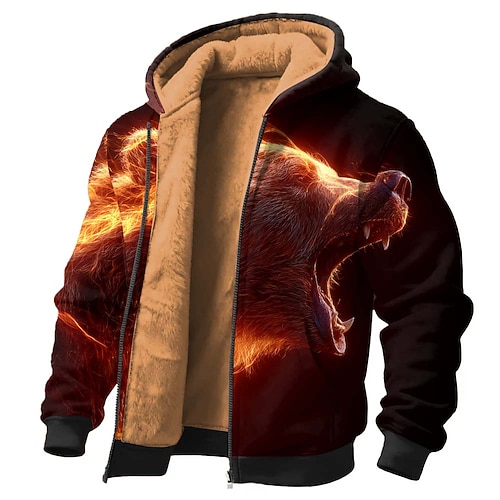 Per uomo Lupo Pile Felpa con Cappuccio Giacca di pelle Felpa Classico 3D Girocollo All'aperto Campeggio Nero 1 Nero Nero 2 Con zip Autunno Inverno progettista S M L XL 2XL 3XL