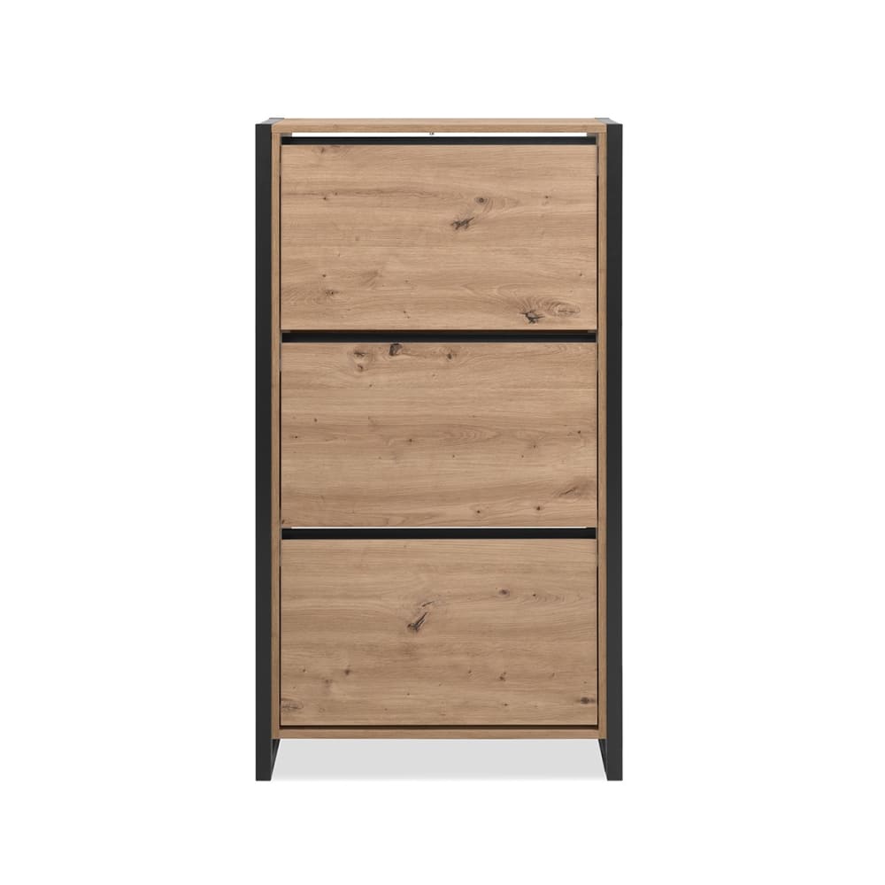 Meuble à chaussures 3 abattants L70 cm - Effet Chêne et Gris
