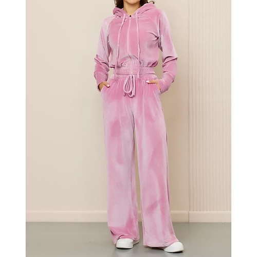 Per donna Attivo Moda Blusa Felpa con Cappuccio Set di Pantaloni Manica Lunga Con Cappuccio Tinta unica Coulisse Cerniera Ferie Abbigliamento quotidiano Uscire Nero Rosa Blu marino Autunno