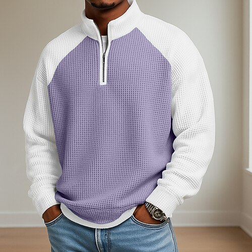Per uomo Polo Polo con zip a un quarto Abbigliamento quotidiano Data Zip a un quarto Manica Lunga Moda Essenziale Semplice Cerniera Primavera Autunno Vestibilità regolare Blu marino Viola Verde