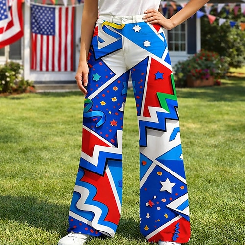 Americano 250 Retrò Vintage Anni '70 Pantaloni Pantaloni a gamba larga Hippie Disco Vita alta Costume Per donna Mascherata 4 Luglio Giorno dell'Indipendenza Semiquincentenario Adulti Pantaloni
