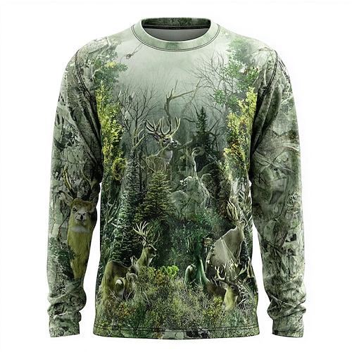 Per uomo Mimetico Cervo Maglietta Manica Lunga maglietta Stampa 3D Girocollo Camicia Moda All'aperto Streetwear Sport all'Aperto Caccia verde 1# Verde 2# Verde 3# Estate Primavera Abbigliamento S M L