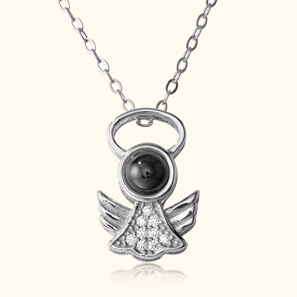 Collar de Alas de Ángel de la Guarda con Proyección de Foto Personalizada 100 Lenguas Te Amo