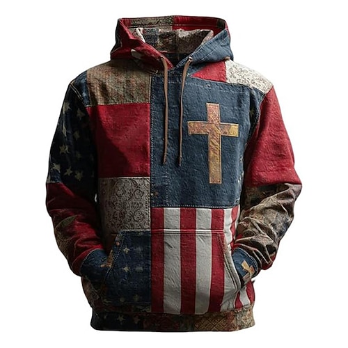 Per uomo Croce Bandiera Americana Felpa con Cappuccio Moda Casual Vintage Retrò Manica Lunga Con Cappuccio Vacanza Feste Abbigliamento casual alla moda Festival Blu Marrone Stampa Autunno Inverno