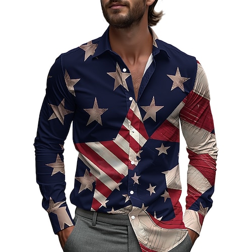 Per uomo Bandiera Americana Camicia Camicia casual Camicia da Spiaggia Manica Lunga Casual Confortevole Vacanza Streetwear Camicia hawaiana Primavera Autunno Bavero Stampato Nero Rosso Blu Blu scuro