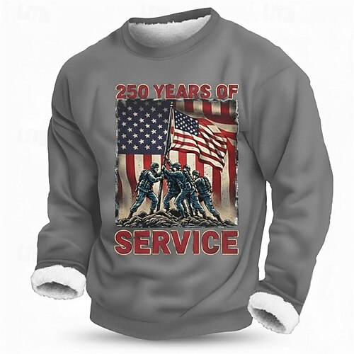 Per uomo Grafico Bandiera Americana Soldato Pile Felpa Streetwear Quotidiano Elegante Classico Casual Girocollo All'aperto Vacanza Uscire Nero Rosso Blu marino Grigio Stampa Autunno Inverno