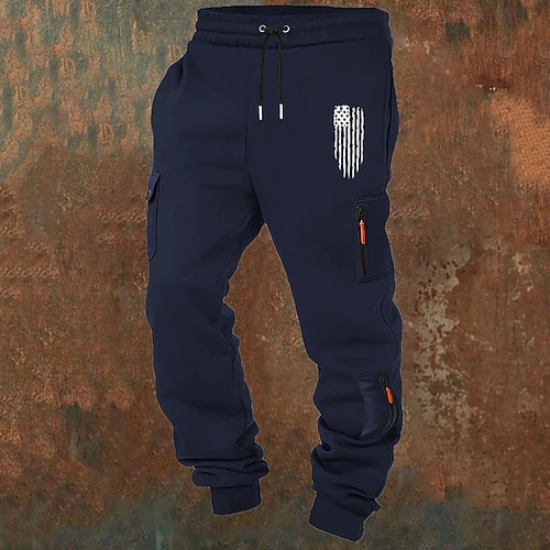 Per uomo Pantaloni Cargo Pantaloni da tuta Joggers Pantaloni Coulisse Tasca Elastico in vita Bandiera Americana Comodità Traspirante Casuale Quotidiano All'aperto Vacanza Moda Nero Bianco