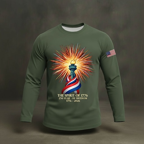 250° anniversario dell'America Per uomo Grafico Bandiera Torcia Maglietta Camicia a Maniche Lunghe Manica Lunga maglietta Stampa 3D Girocollo Camicia Moda Quotidiano Essenziale Quotidiano Vacanza