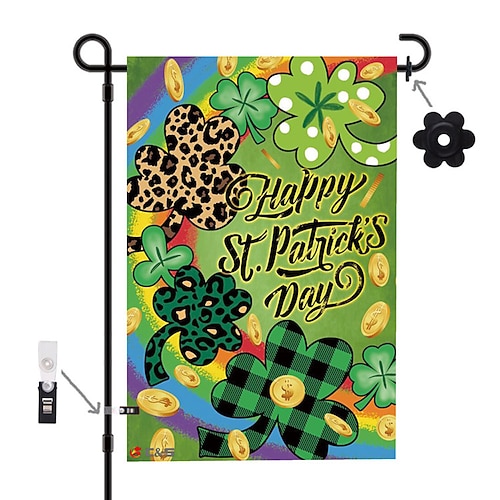 bandiera da giardino per il giorno di San Patrizio, decorazione primaverile per il cortile, design con trifoglio irlandese, bandiera per feste di Natale per giardino esterno, decorazioni per la festa