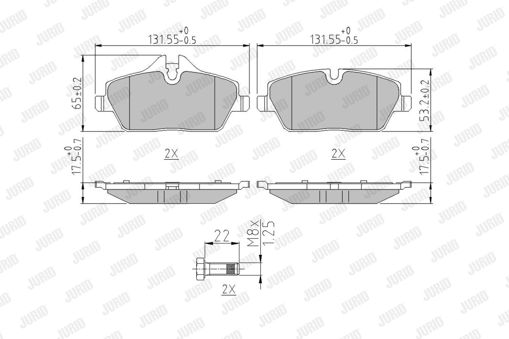 JURID Bremsbelagsatz, Scheibenbremse 573733J vorne rechts links mit Zubehör für MINI BMW 34116772892 34116860016 34112289145