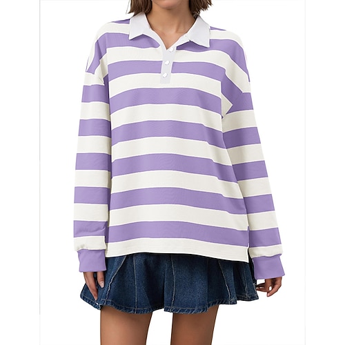 Per donna Maglietta A righe Moda Elegante Classico Manica Lunga Colletto a Camicia Top Regolari Quotidiano Uscire Weekend Bottoni Blu Bianco e nero Bianco Giallo Rosa Primavera Autunno