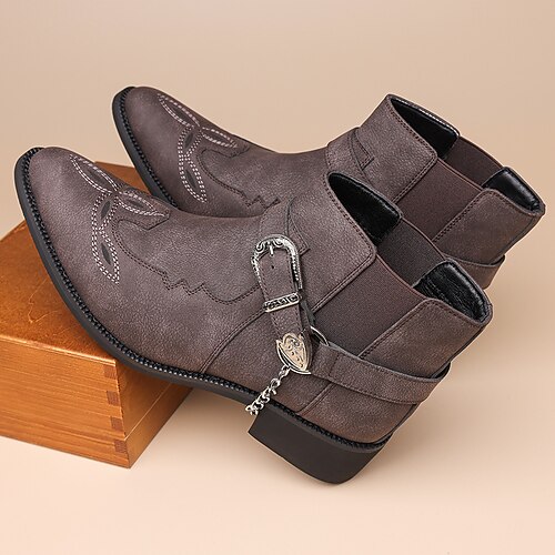 stivaletti western da uomo in similpelle grigia – cinturino con fibbia e catena in metallo per concerti country, feste notturne e streetwear di tendenza